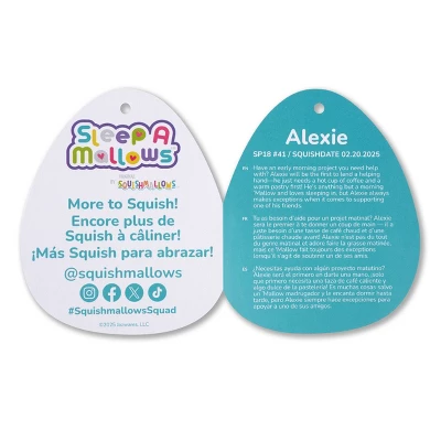 Cuddle up with Squishmallows Sleepamallows! These super-soft plush make great bedtime buddies and won’t even mind if you snore. Alexie and the rest of the Sleepamallows Squad are only by Original Squishmallows. Join the Squad today!