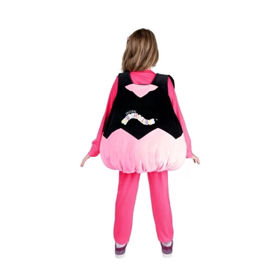 Rock the block this Halloween season as Emily the Black Bat! Squishmallows Halloween costumes are made with ultrasoft, high-quality material and perfect for costume parties, long nights trick or treating, or just to wear around the house. The Emily the Black Bat in Pink Pumpkin Children’s Costume features a velvety exterior fabric + our official embroidered logo and makes a great addition to any Squishmallows group costume. Grab your friends and form your very own Squad with other Squishmallows Halloween costumes, like Mariposa the Green Witch! Additional Halloween extensions—including soft + study treat pails, online ’Mallow Mash exclusives, and frighteningly fabulous seasonal apparel—make celebrating with Squishmallows the most adorable way to ring in the spookiest time of year (or any time of year). One size fits most children. Join the Squad and celebrate All Hallows’ Eve with your favorite spooky cute ’Mallows!