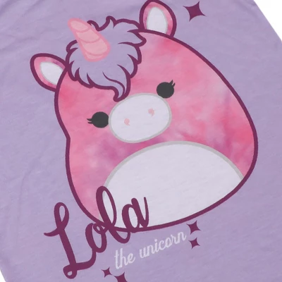 - CUSTOM DESIGN: Images of Lola the Unicorn and purple sparkles decorate the graphic tee and sleep pajama pants in this sleep set. Fans of the Squishmallows character will love this fun character design.